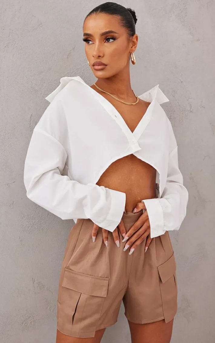 These shorts are at the top of our new season hit list. Featuring a mocha hue material with a cargo style and pocket detailing, we are obsessed. Wear with a shirt, a cropped blazer and heels for a look that will earn you some serious style points.