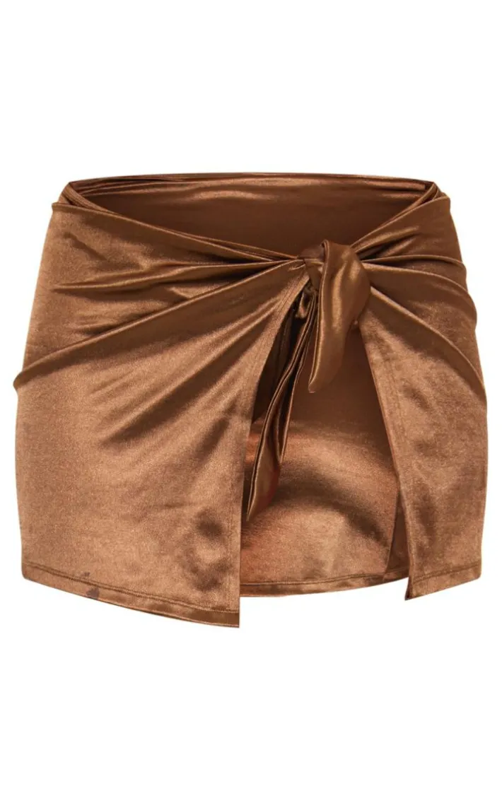 For an Insta worthy look, this mocha satin mini beach skirt is essential. This skirt is brought to you in a mocha satin material with a mini length for a flattering fit you wont be able to resist. This beach skirt will have you feeling edgy all season. Why not team with the matching bikini to complete the look everyone is talking about.