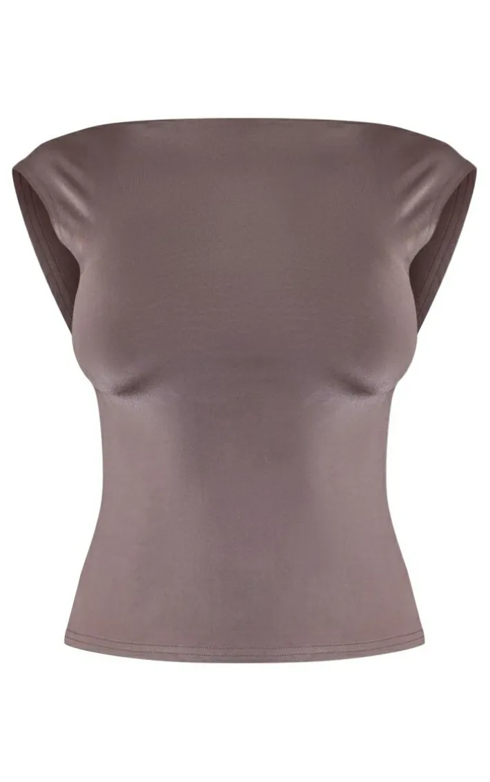 Reach for this mocha slinky open back longline top for a look that can effortlessly be dressed up or down to suit your plans. Brought to you in an edgy mocha shade, with a flattering slinky material and open back design, what’s not to love? Team with a matching hue mini skirt and pair of nude heels for a look that won’t go unnoticed.