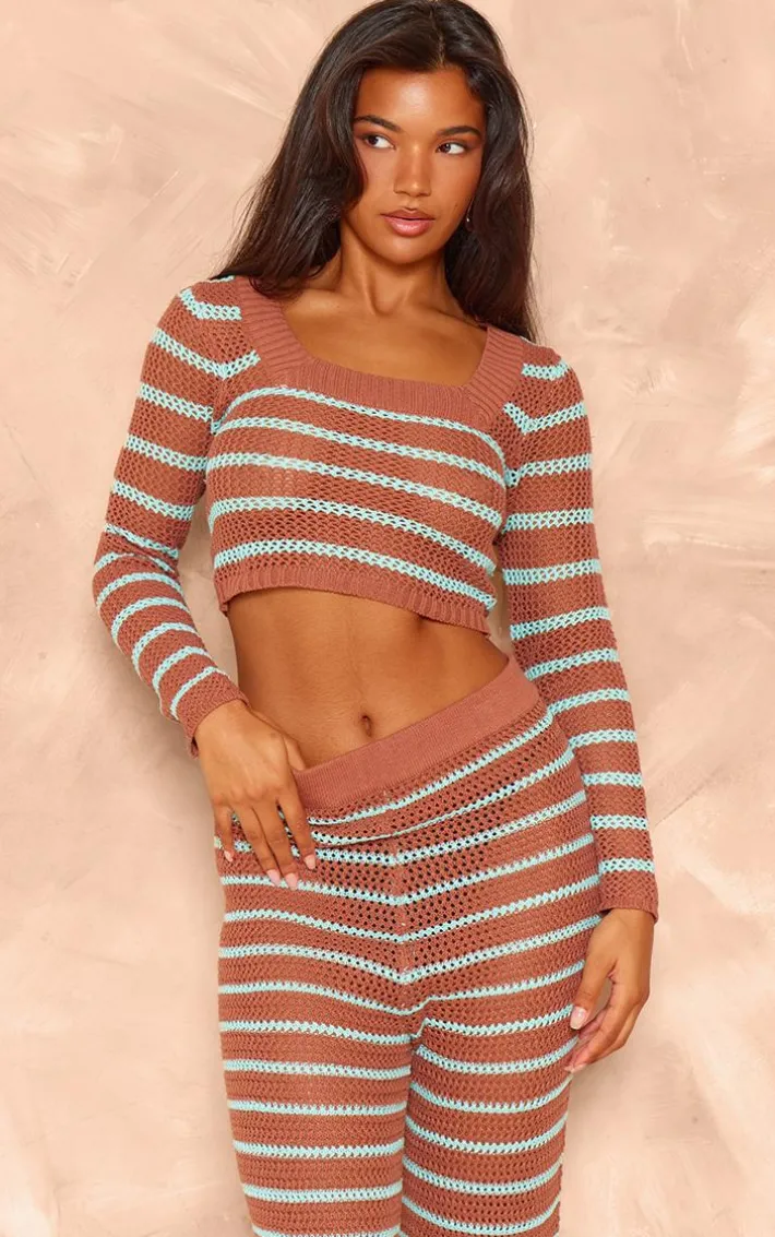 Take your everyday look to the next level with these mocha stripe crochet knit wide leg pants, perfect for your everyday styling and beyond. Brought to you in a mocha knit material with a stripe crochet design, we simply can’tget enough. With a wide leg fit, these pants have a versatile style and they are sure to be your new go-to. Style with the matching top, a pair of sandals and accessories of your choice for a look that we can’tget enough of.