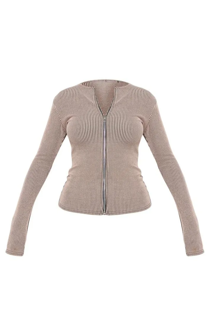 You need this two tone rib longline zip up top in your everyday collection. Brought to you in a mocha material with a two tone design, we are seriously obsessed with this zip up top. Its longline fit gives you a flattering fit like no other. Team with the matching leggings and your fave sneakers to complete the look everyone is talking about.