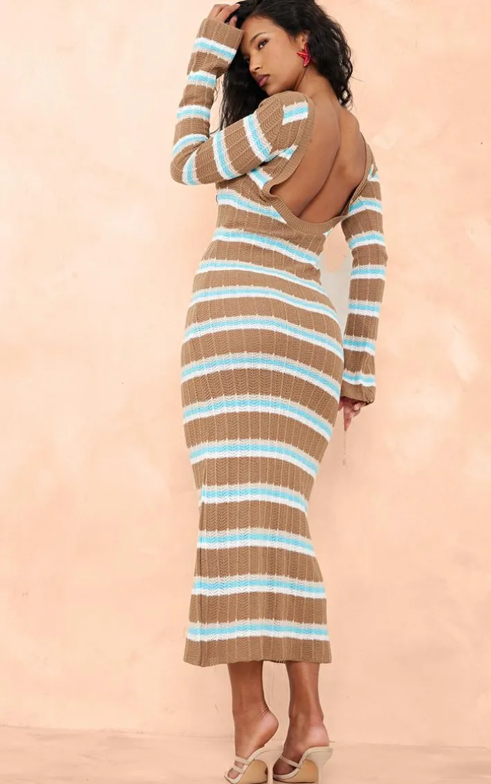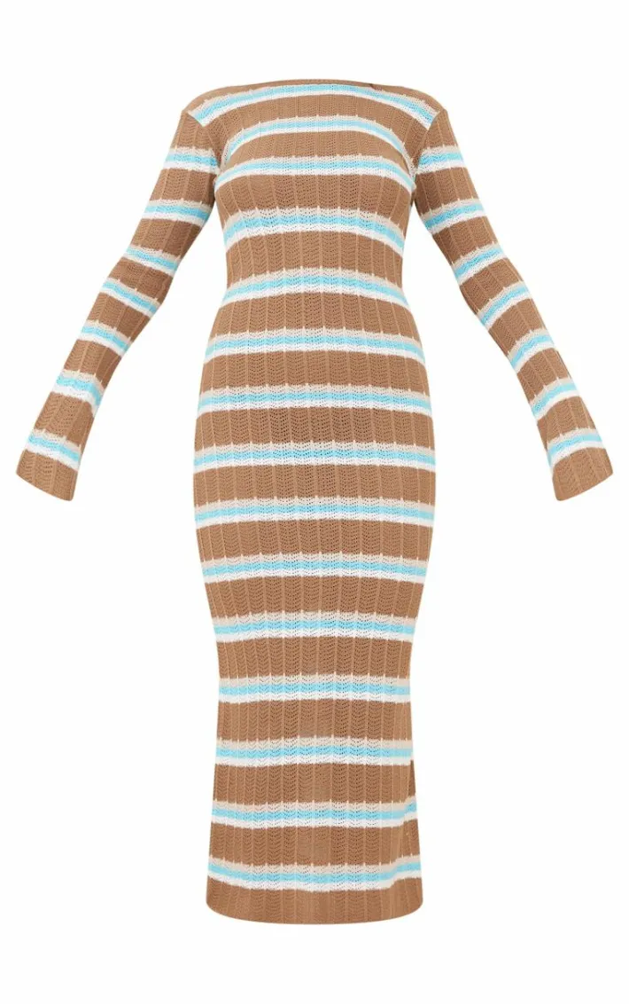 Make heads turn for all the right reasons in this mocha wide rib knit striped long sleeve maxi dress. Brought to you in a mocha hue rib knit material with a striped design, long sleeves and a flattering maxi fit, how can you resist? Style this maxi dress with heels, a mini bag and gold accessories for an effortlessly chic look we just can’t get enough of.