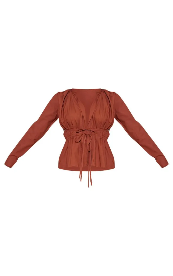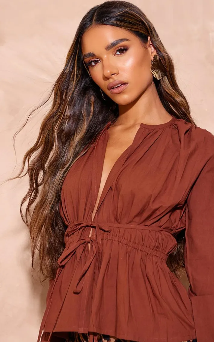 Look all kinds of glam in this mocha woven double tie shirred top. Brought to you in a mocha hue woven material with a shirred detail and double tie fastening, this top is everything you need and more. Style with leopard print hot pants, your fave heels and gold accessories for a look like no other.