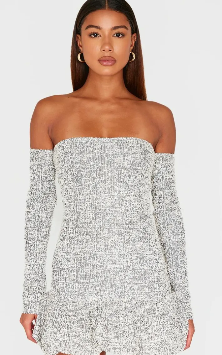 Feel effortlessly chic with this monochrome bardot boucle puffball mini dress. Brought to you in a monochrome boucle material with a bardot fit, this mini dress is sure to solve your what to wear dilemmas. This mini dress has a puffball design that will have you nailing trends. Team with a pair of heeled boots and gold accessories for a look like no other.