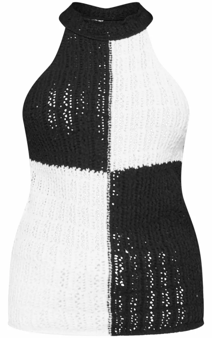 Amp up your style game this season with this monochrome high neck contrast crochet knit top. Brought to you in a monochrome crochet knit material with a high neck detail and contrast design, this top is a must have. Style with white bottoms, sandals and gold accessories for a figure flattering fit we can’t get enough of.
