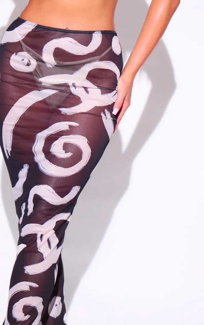 Create a look everyone will be obsessing over with this unreal monochrome swirl mesh maxi beach skirt, we just can’t get enough. This skirt features a monochrome mesh material with a swirl print and a maxi length. Style this mesh skirt with your fave bikini and gold accessories for the perfect poolside look.