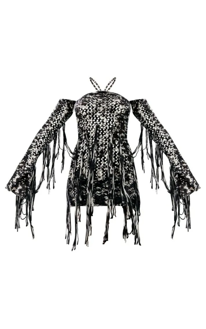 Get ready to have all eyes on you with this monochrome twist marl knit mini dress and sleeves. This dress is brought to you in a monochrome knit material with twist detailing and matching sleeves, what’s not to love about this? When the weekend calls so does this mini dress. Finish off the look and add clear high heels with your statement accessories for a look like no other.