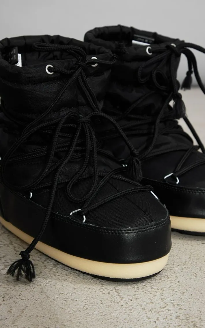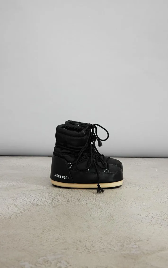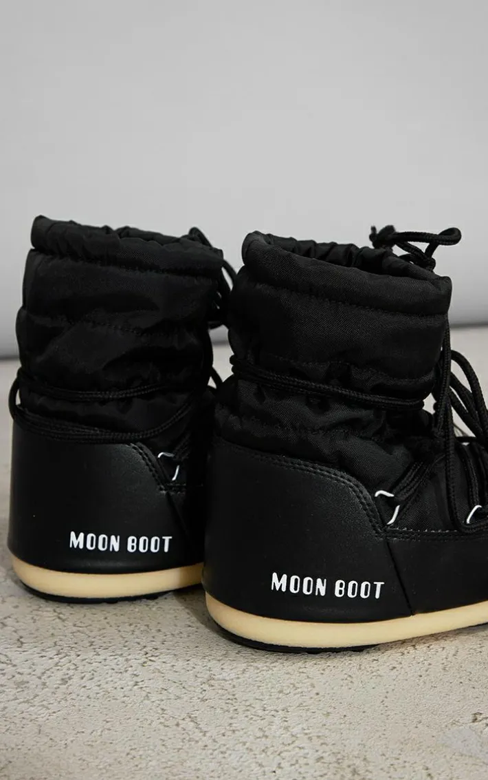 Winter is here dolls and these Moon Boots are just what you need. Featuring a black material with a ‘Moon Boot’ graphic detail and a lace-up fastening, what’s not to love? Complete the look for a ski season with the monochromatic puffer jacket and salopettes.