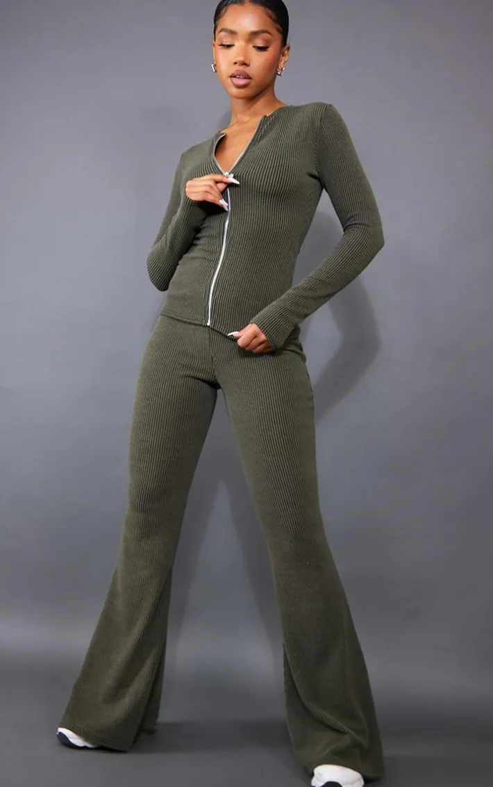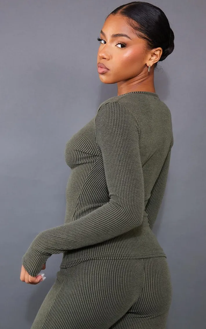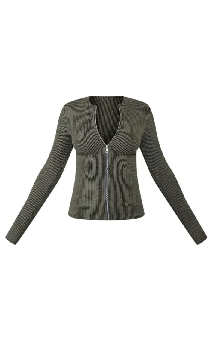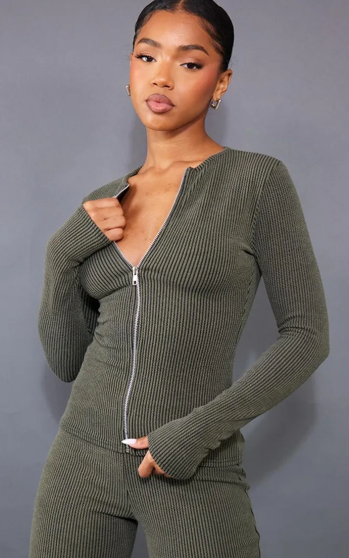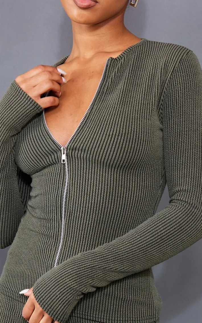 Upgrade your off-duty look with this top. Featuring a moss khaki two tone rib material with a zip-up front and a longline style, we’re obsessed. Pair with the matching leggings, accessories and box-fresh kicks to amplify the look.