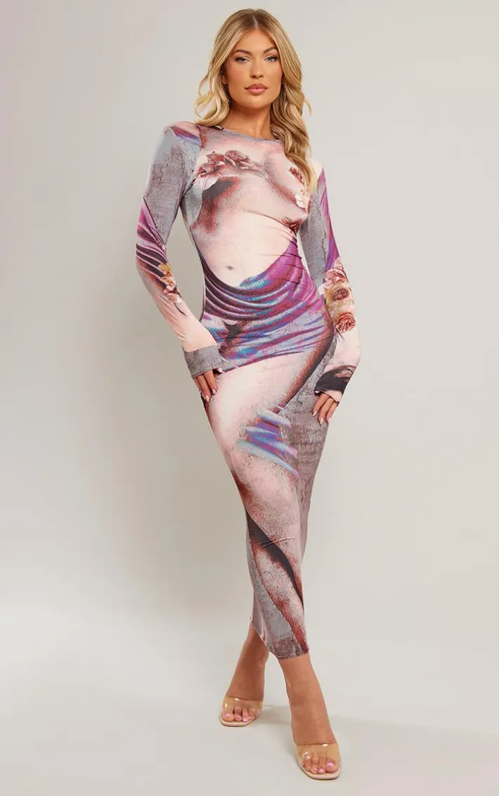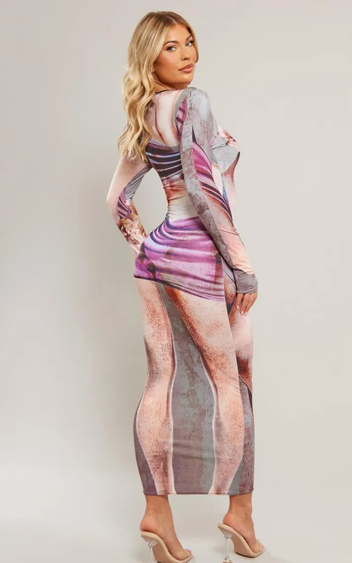 This multi abstract body print long sleeve midaxi dress is at the top of our new season hit list. This dress is made from an abstract body print that will have you standing out from the rest at any upcoming occasion. With a long sleeve design and a midaxi length, you won’t blend in with this dress. Style with some clear heels and a bag to complete the look that will have all eyes on you.