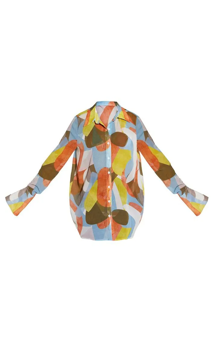 Your new season beach look is finally complete with this shirt. Featuring a multi-hue abstract printed mesh material with long sleeves and an oversized fit, we’re in love. Layer this over a matching bikini set and complete the look with shades and sandals.