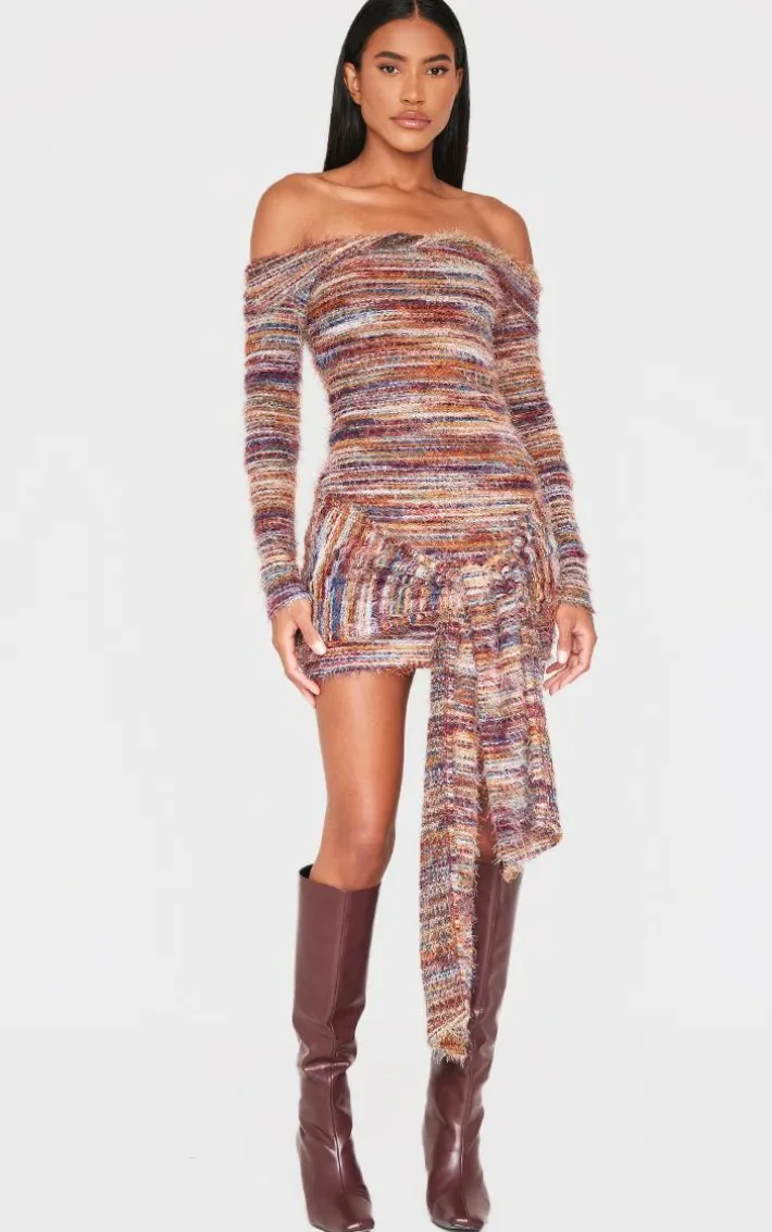 Bag this multi brushed textured bardot wrap detail bodycon dress to steal all the stares whatever your weekend plans. Brought to you in a must have multi shade, with a brushed textured material, a bardot design and wrap detail, this dress is sure to give a figure-flattering finish. Style with a pair of knee length boot heels and gold accessories to complete the look.