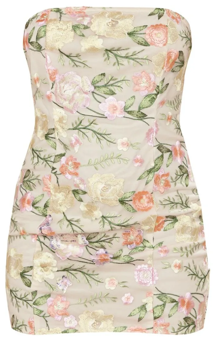 Found some last-minute weekend plans and need an unreal ‘fit? Then we have you covered with this styling staple, this multi floral applique bandeau bodycon dress. With a multi floral applique material with a bandeau style and a figure-flattering fit, we’re obsessed. Work your styling techniques and add a pink rose corsage, gold accessories and your trusty high heel for a weekend-worthy finish that will gain all the likes.