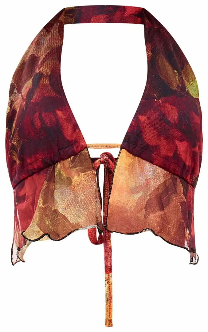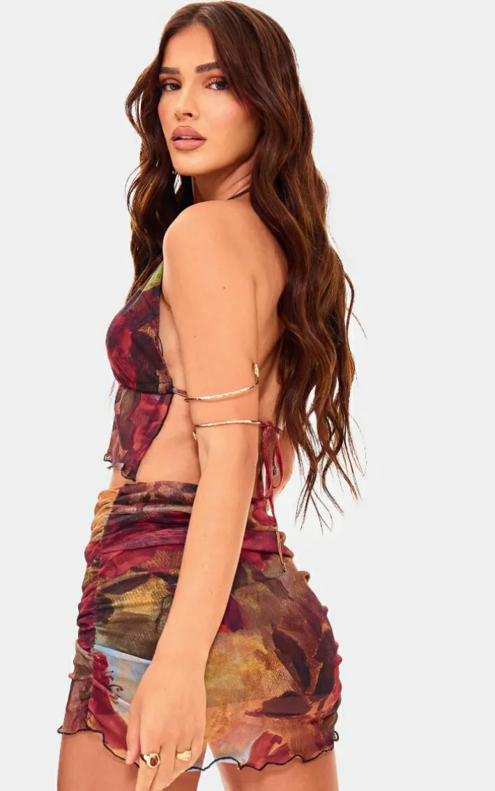 Turn heads for all the right reasons in this multi floral printed mesh halterneck top. Brought to you in a multi hue mesh material with a floral printed design and halterneck detail, this top is a must have. How can you resist? Style with the matching skirt, lace up heels and gold accessories for a figure flattering finish we can’t take our eyes off.