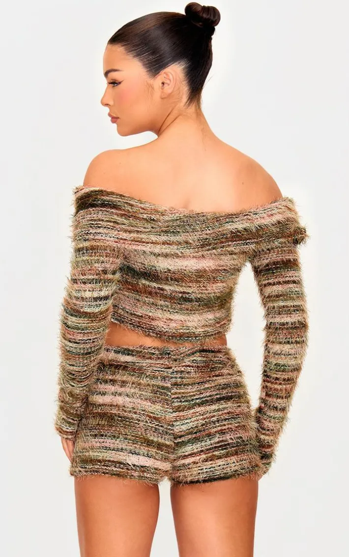 Take your new season wardorbe to new heights with this multi fluffy textured foldover bardot top. Brought to you in a multi hue fluffy textured material with a foldover bardot neckline, how can you resist? Style his bardot top with the matching hot pants and heels for a look they won’t be able to take their eyes off.