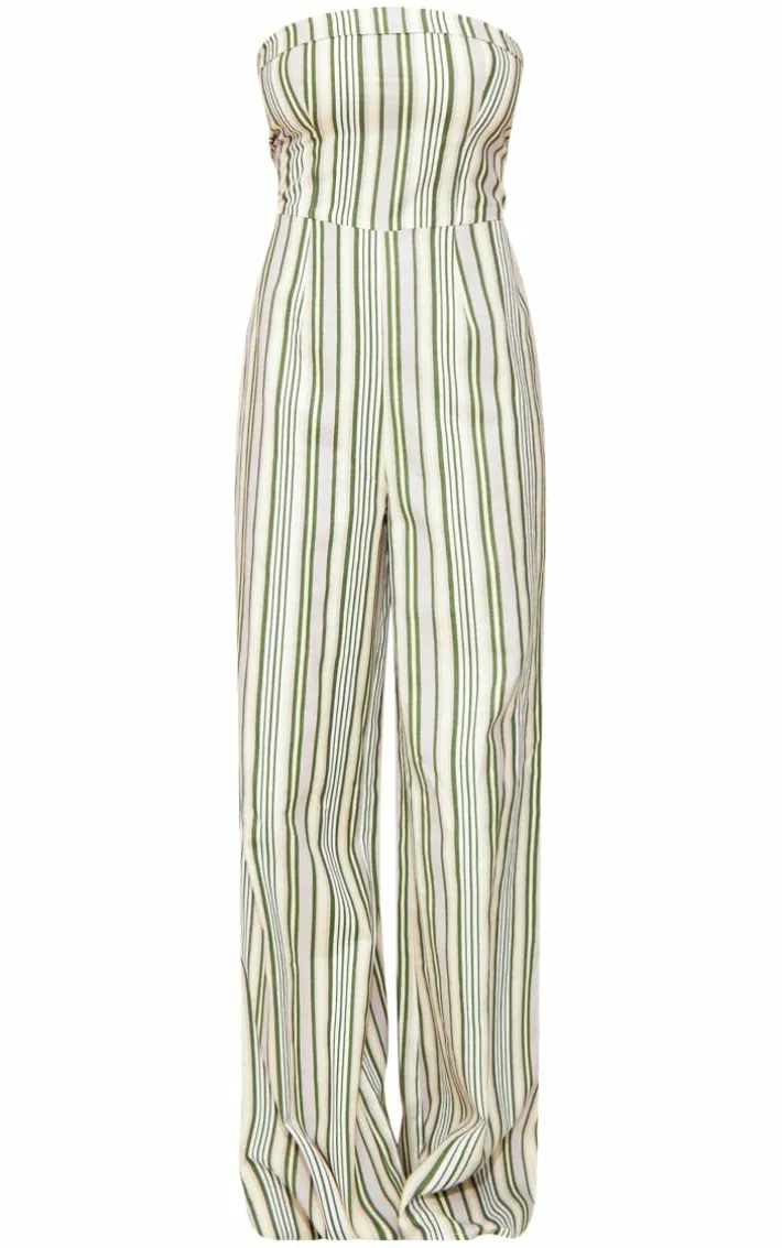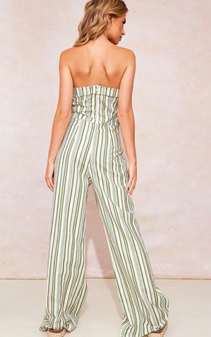 Nail all the new season trends with this multi linen pinstripe bandeau fold over jumpsuit. This jumpsuit is brought to you in a multi linen look pinstripe bandeau fold over jumpsuit. This jumpsuit is brought to you in a multi linen look pinstripe material with a bandeau design and a fold-over front, what more could you ask for? Style this jumpsuit is sandals and a mini bag to complete the look.