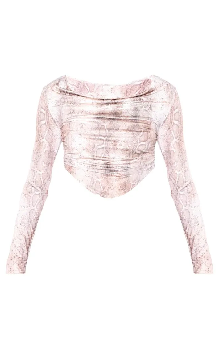 Inject some of this seasons must-have prints into your weekend wardrobe with this multi slinky muted snake print long sleeve cowl neck top which won’t let you go unmissed. Brought to you in a multi slinky material with a muted snake print and a long sleeve fit, how could you resist? With its cowl neck design, you’re sure to have all eyes on you. Pair with your fave heels and a pair of statement pants for the perfect finish.