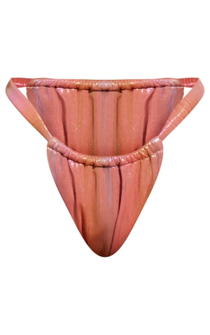 Your poolside look has arrived with these multi shimmer ruched tanga bikini bottoms. Brought to you in a multi shimmer material with a ruched design, giving you a flattering fit like no other. Team these tanga bikini bottoms with the matching bikini top and your fave accessories for a look like no other.