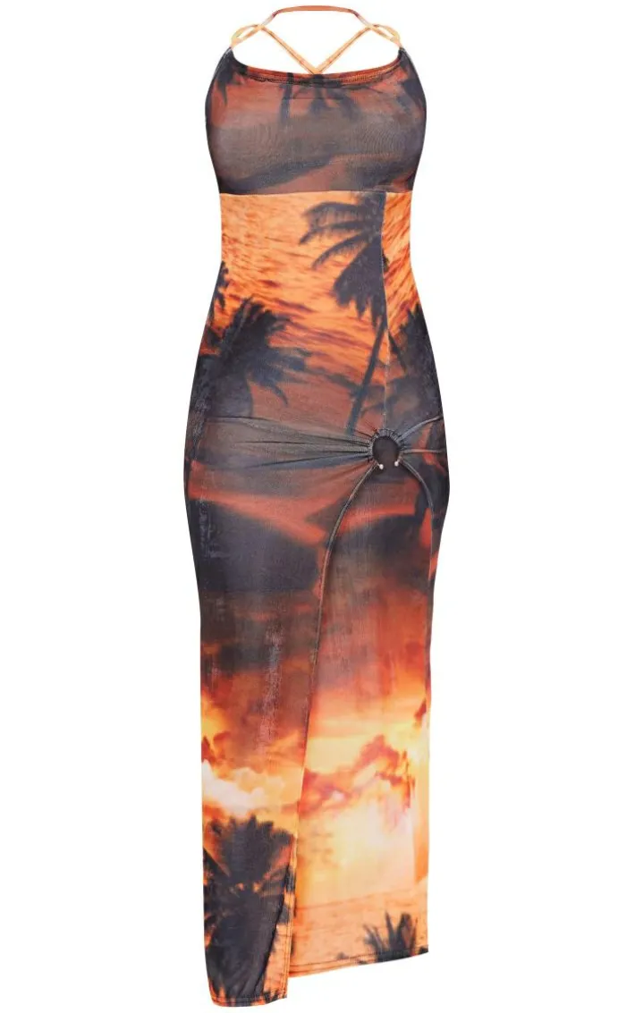 Get vacay ready with this multi sunset print lace back ring skirt detail maxi dress. Brought to you in a multi sunset print material with a lace back design and a ring skirt detail, how could you say no? This maxi dress is perfect for those vacay nights and is sure to gain you all the compliments. Team with clear heels, gold accessories and a mini bag for a dreamy finish.