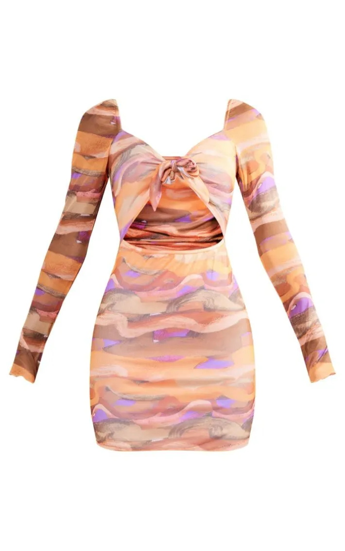 Channel all the luxe vibes into your new season wardrobe with this multi swirl tile print mesh tie front cut out bodycon dress, you’re sure to have heads turning for all the right reasons. It includes a bold multi swirl tile print mesh material with a cut out design and a tie front detail, how could you resist? Wear with strappy heels and gold hoop earrings for a look that is perfect for your next night , it’s a yes from us.