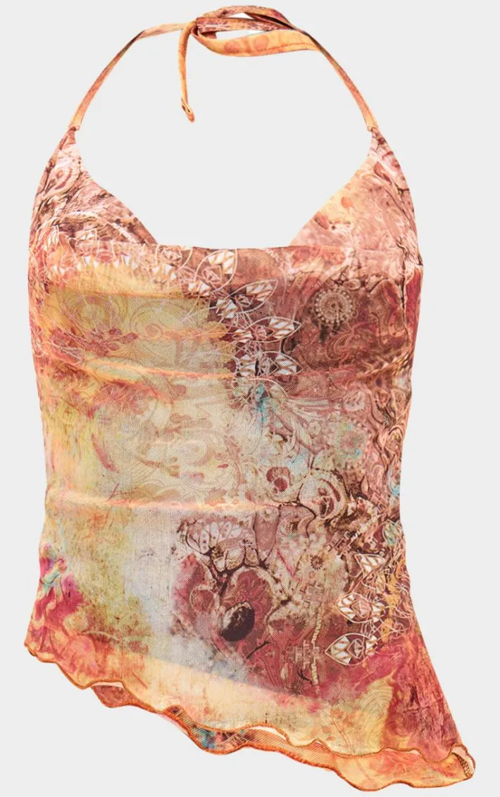 You’re going to be stealing all the stares in this multi washed paisley printed mesh cowl neck top. Brought to you in an eye-catching multi colored paisley print, with a mesh material and cowl neck for a figure-flattering finish, we can’t stop thinking about this top. Pair with the matching shorts, some knee high boots and gold accessories to really stand out from a crowd.
