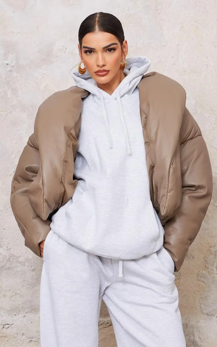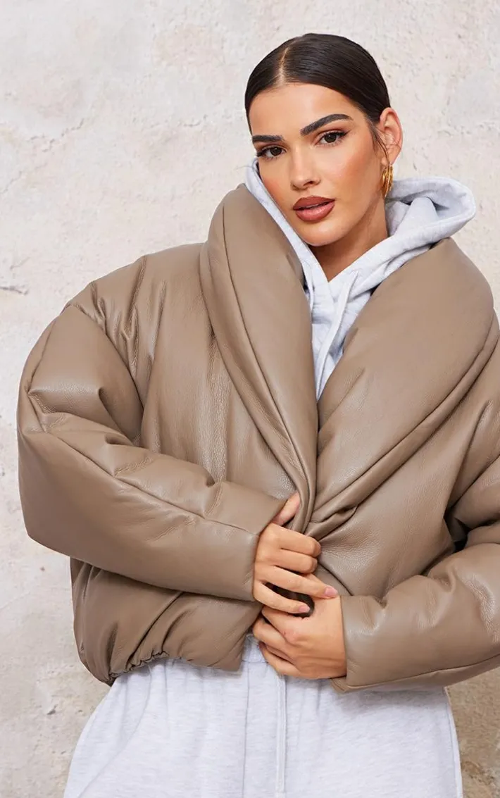 You need this mushroom exaggerated collar PU cropped puffer coat in your collection to elevate any outfit. Brought to you in a mushroom PU material with an exaggerated collar and a cropped length, this puffer is all you need to feel chic. Team with a pair of comfy sweatpants and your fave sneakers for a look that will steal all the stares.