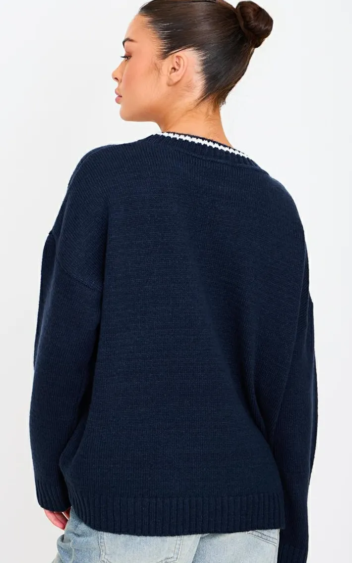 For those off-duty days, this navy knit oversized embroidered sweater is a must have. Brought to you in a navy knit material with an oversized fit and an embroidered detail, you won’t be able to resist. Style with some jeans and a pair of sneakers to complete the look we are loving.