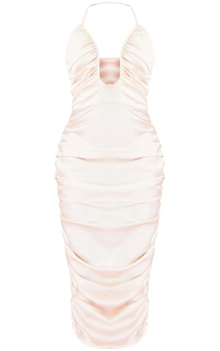Looking for the perfect occasion ‘fit? We’ve got you covered with this new nude satin plunge ruched midaxi dress. Made from a new nude hue satin material that’s giving us all the luxe feels and featuring a plunging neckline, ruched detailing and a figure-flattering midaxi length, how can you not fall in love with this dress ? Just add matching hue heels and gold accessories for a flawless finishing touch.