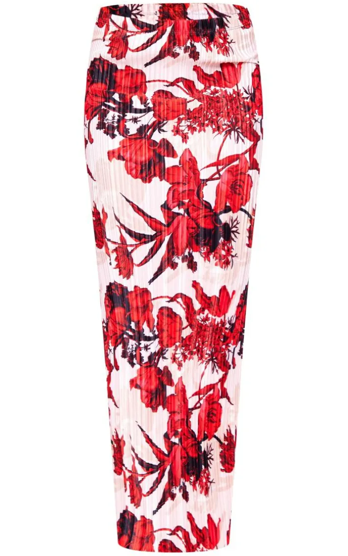 Give your new season wardrobe the love it deserves with this nude floral print plisse maxi skirt, it is the ultimate must-have for your weekend plans and beyond. With a nude plisse material, a floral print design and a maxi length, get ready to have all eyes on you. Style this women’s maxi skirt with the matching top, clear slip-on heels and gold hoop earrings for a look everyone will want.