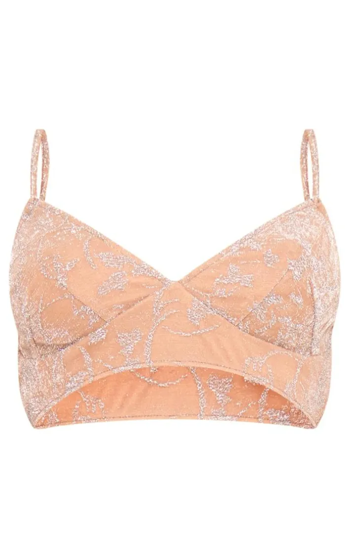 Get ready to look all kinds of glam in this dreamy nude metallic textured mesh bralet, we’re seriously in love. With a nude mesh material, a metallic textured design and a figure-flattering fit, this bralet is perfect for your next event. Style this mesh bralet with the matching skirt, clear slip-on heels and your biggest hoop earrings for a look no one will forget.