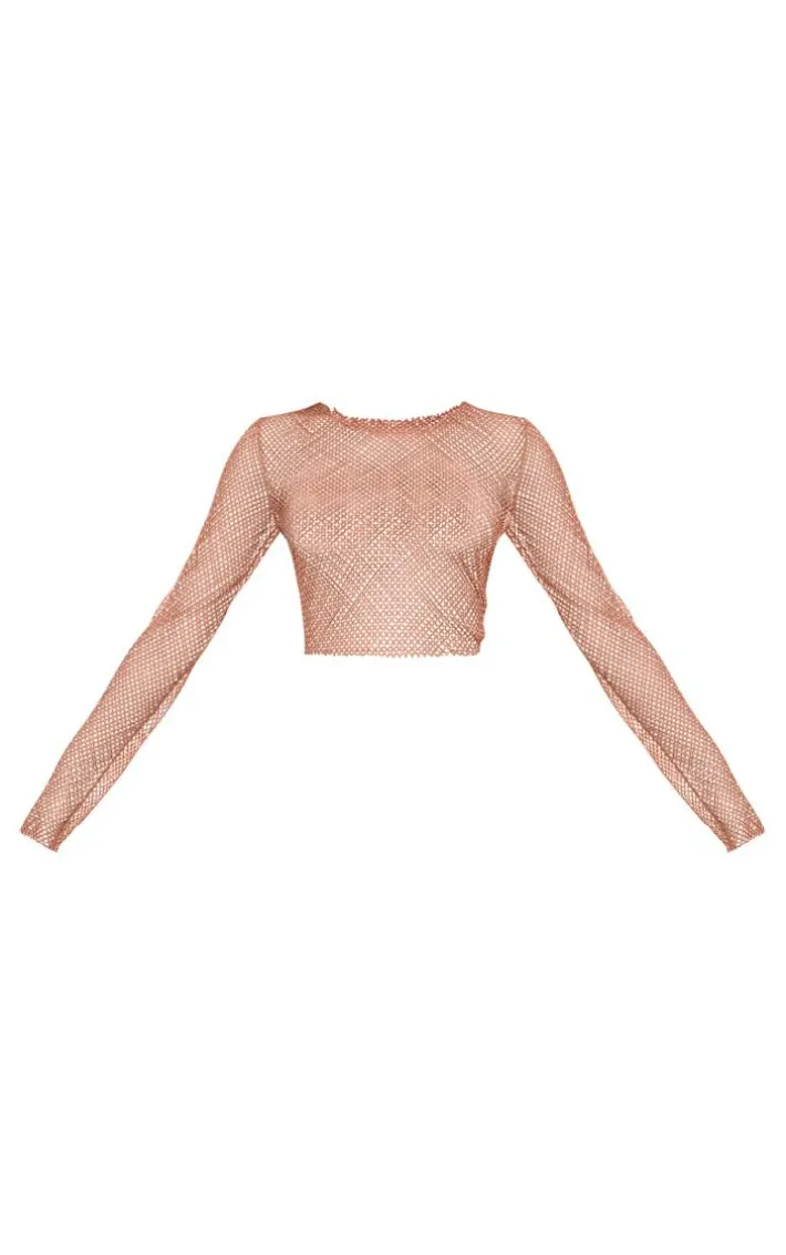 Have heads turn for all the right reasons with this nude rhinestone fishnet long sleeve crew neck crop top. This crop top is brought to you in a nude fishnet material with rhinestone detailing, long sleeves, a crew neck and a cropped length, what’s not to love? Pair this with a matching hue mini skirt, high heels and accessories to finish off the look.