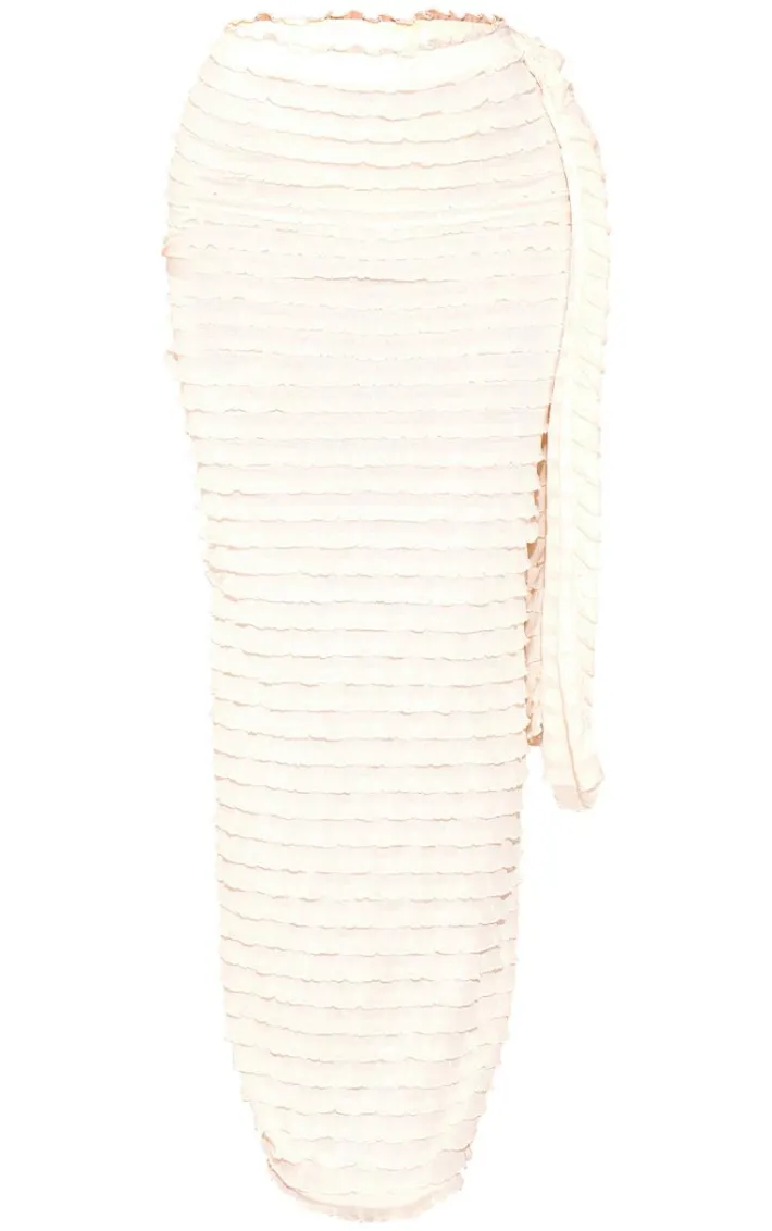 Look all kinds of glam in this nude ruffle textured draped detail maxi skirt. Brought to you in a nude ruffle textured material with a draped detail, this maxi skirt is at the top of our most wanted list. Style with the matching top, gold heels and accessories for a combo we’re crushing on. ‘Add to bag’ has never looked so good.