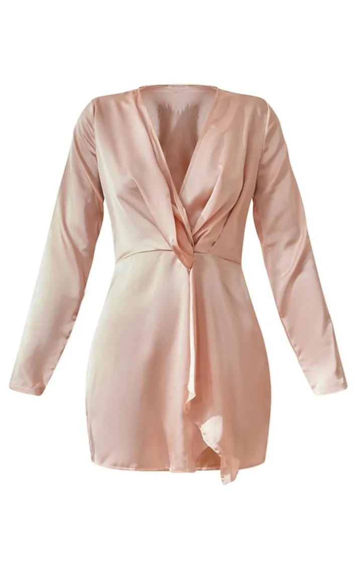 Show off your shape in this dreamy satin dress , the perfect piece that is giving us all the luxe vibes. Featuring a nude satin material with a flattering plunge neckline and a wrap waist design, how could you resist? A wrap dress is a staple piece this season and this one is sure to be at the top of your new season hit list. Style this with strappy heels and statement accessories for the ultimate weekend-ready fit.
