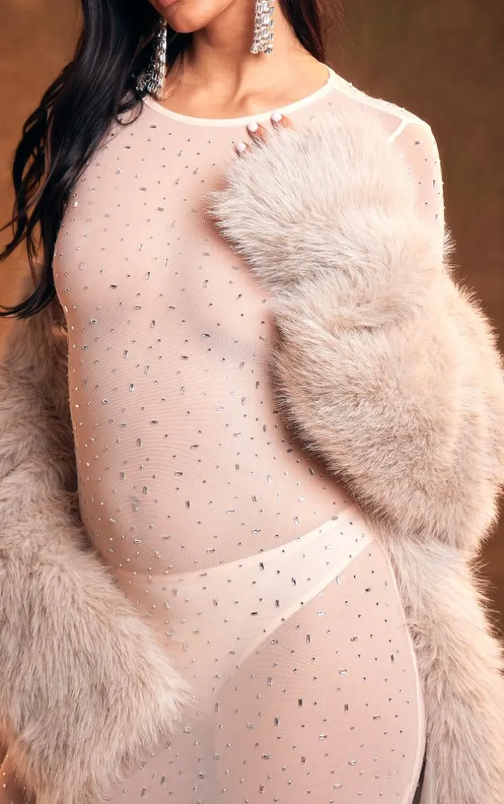 We have got your weekend ‘fit covered so stop scrolling and add this nude sheer diamante mesh long sleeve maxi dress to your basket. Brought to you in a nude sheer material with diamante detailing, long sleeves and a maxi length, what more could you ask for? This is at the top of our hitlist this season and is sure to impress. Simply team with your fave heels, gold accessories and a mini bag to nail all the major trends.