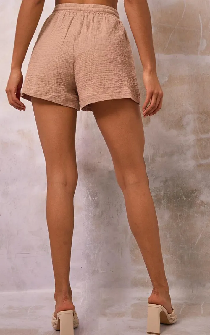 These shorts are everything we are loving for the upcoming season. Featuring a nude woven material with an elasticated waist and floaty fit, we are in love. Wear with the matching shirt, a bralet and heeled mules to complete this must-have look.