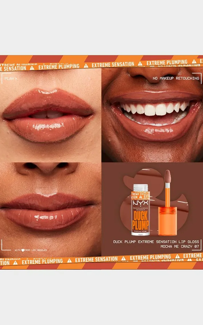 CAUTION! CAUTION! May cause duck lips! Get instant and overtime plumping for the ultimate injectionless pout with duck plump extreme sensation plumping gloss! Feel the extreme plumping sensation powered by spicy ginger. Giving you 2 transparent shades and 16 high pigment shades to play from! Maximum intense color with minimum effort! Vegan formula. Pro performance.