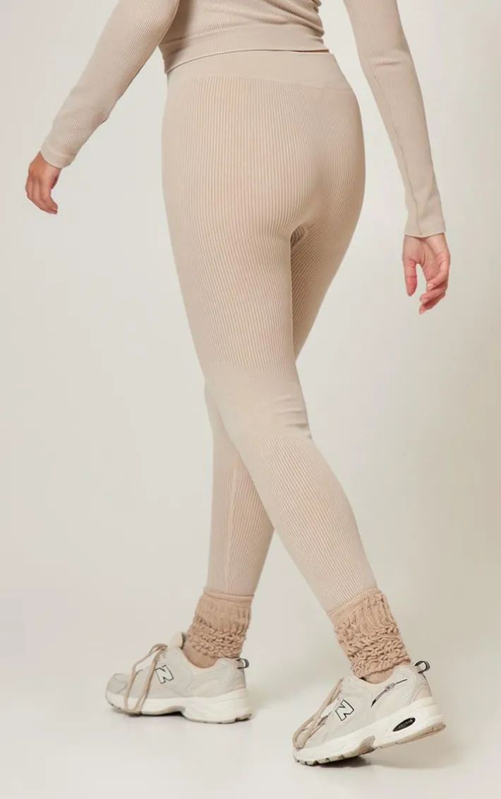 Hit refresh on your workout wardrobe with these leggings. Featuring a washed oatmeal soft rib material with a high waistline and a flattering fit, we are in love. Wear with the matching top and fresh kicks for the perfect gym combo.