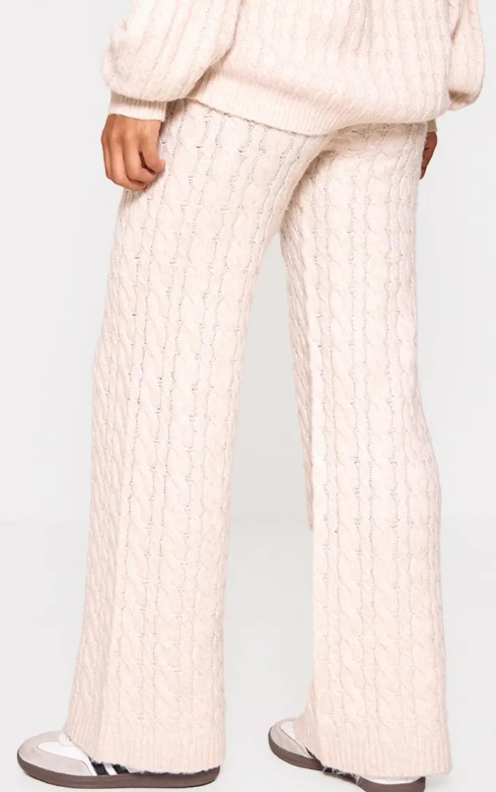 These oatmeal cable knit drawstring waist pants are a staple in your winter wardrobe. Brought to you in a neutral oatmeal shade, with a cable knit material for a cosy feel and a drawstring detail, reach for these on all your nights in. Style with the matching cardigan and sneakers to complete the look.