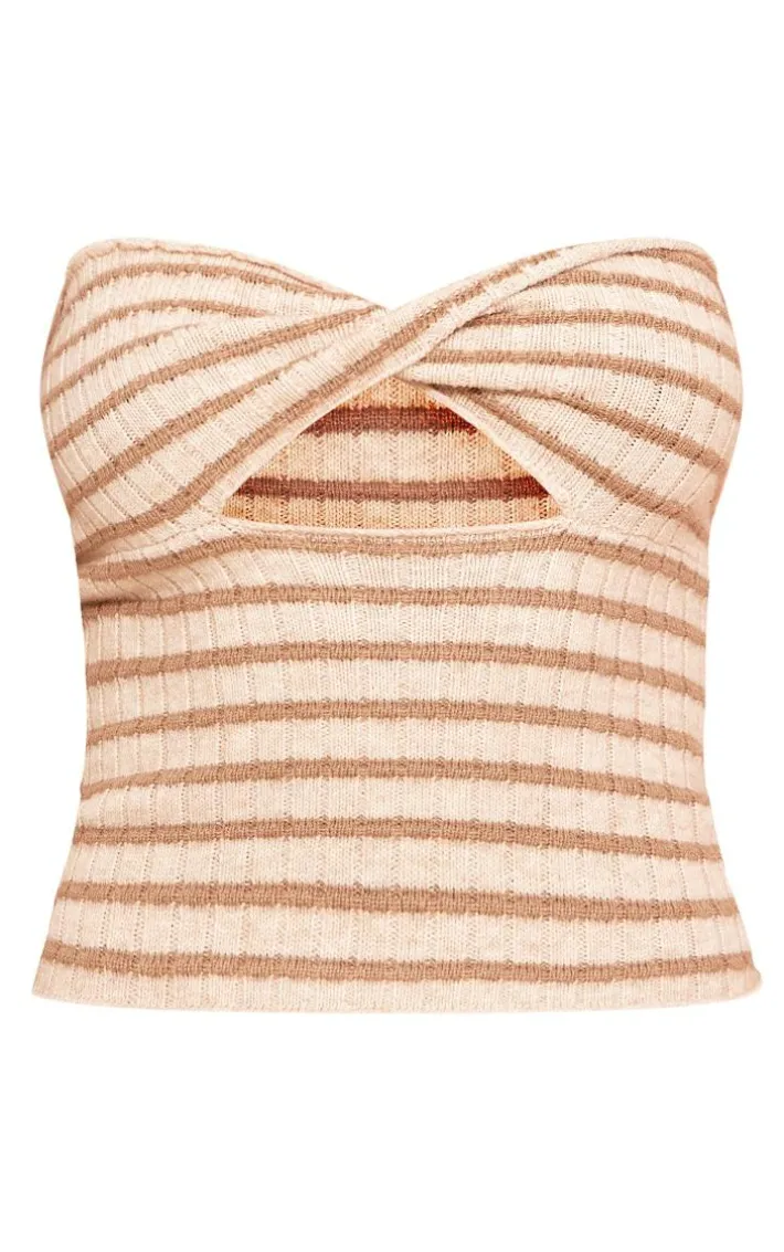 Take your new season look to a whole new level with this oatmeal contrast twist knit cut out bandeau top. Brought to you in an oatmeal hue knit material with a contrasting twist design, a bandeau neckline and cut out detailing, how can you resist? Style this bandeau top with shorts, flatform sandals and gold accessories for a look that is sure to make heads turn for all the right reasons.