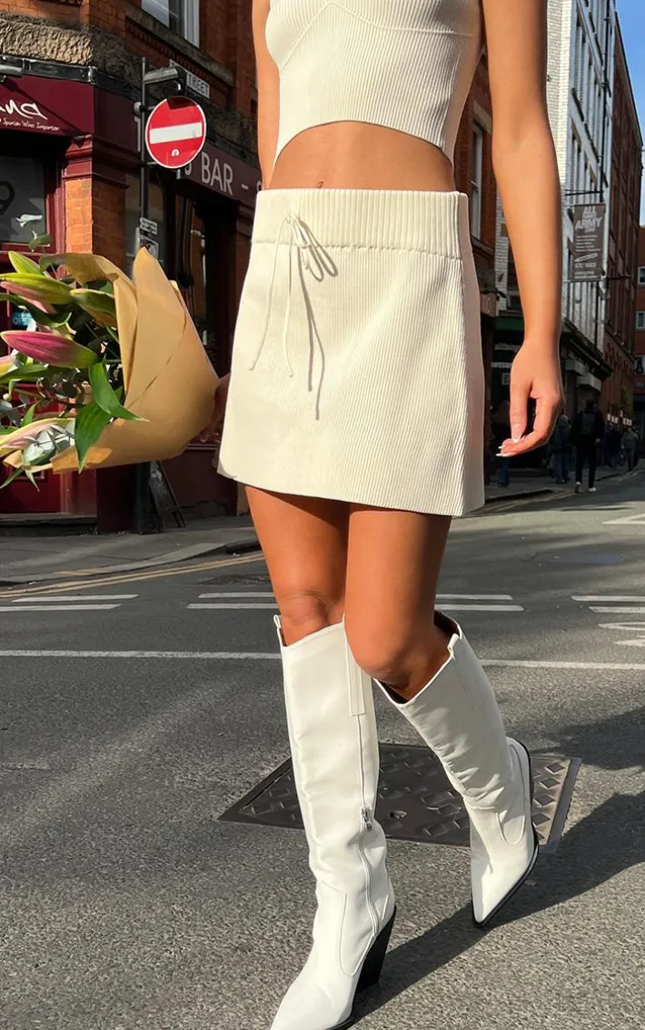 Switch up your new season style game with this oatmeal knitted tennis skirt. Made from a neutral oatmeal hue knitted material with a tennis style and drawstring waist detailing, how can you resist? We are loving this tennis skirt paired with the matching top, western-style boots and simple accessories for a look that will earn you some serious style points this season.