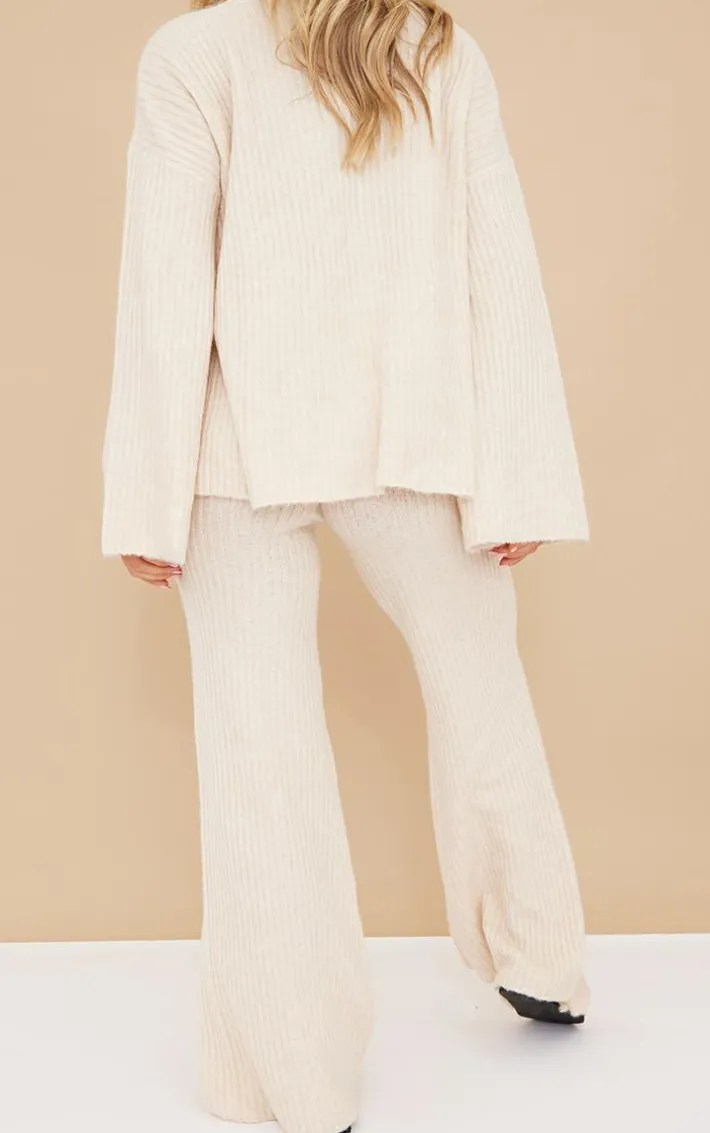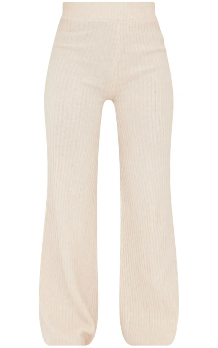 Enter the new season in style with these bottoms. Featuring an oatmeal hue rib knit material with a wide leg design. Wear with the matching top for a chilled look we’re loving.