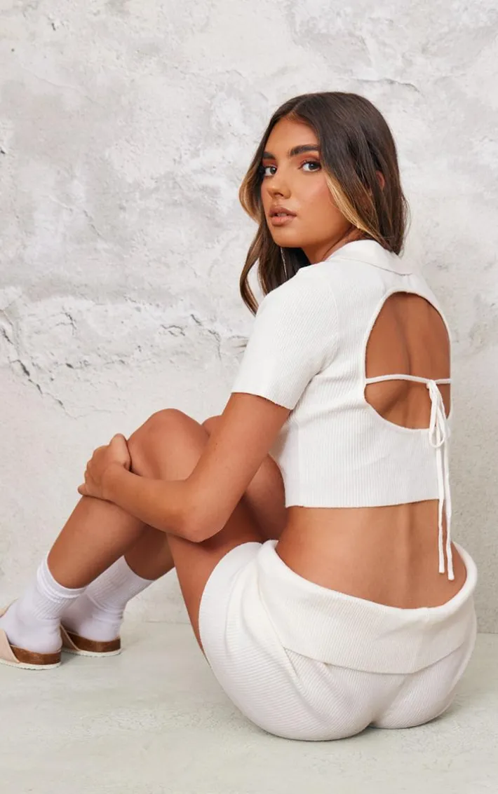 Say hello to your new season staple with this oatmeal soft knit collar detail open back top. Brought to you in an oatmeal soft knit material with a collar detail, how could you say no? This open back top is all you need to feel seriously chic this season and beyond. Style effortlessly with the matching shorts and a pair of sneakers for a look that will turn heads for all the right reasons.