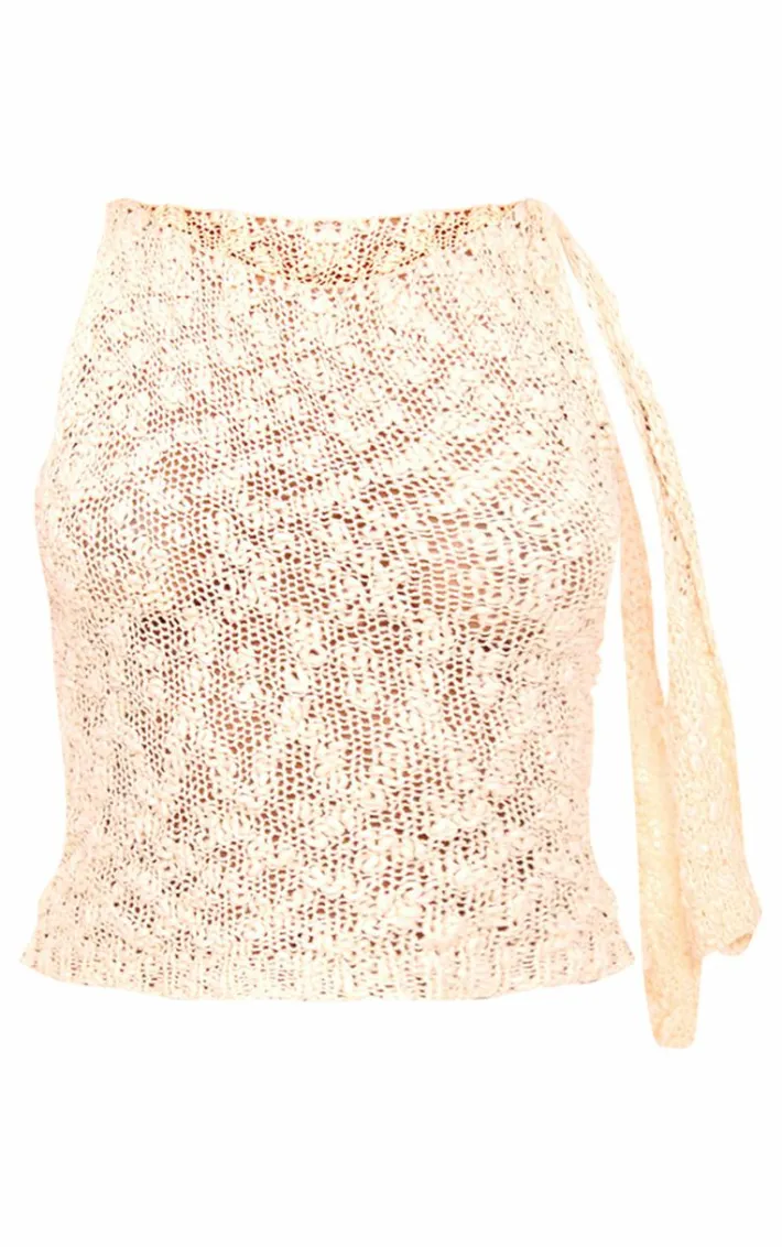 Take your wardrobe refresh to the next level with this oatmeal textured crochet knit tie neck top. We’re obsessed with the oatmeal color, the textured crochet knit material and the tie neck detail, what more could you want? Pair with the matching skirt, a belly chain and your fave shoulder bag for a look like no other.