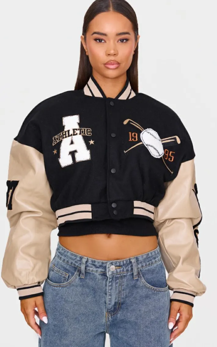 Get ready to elevate your attire in this oatmeal wool look graphic front cropped bomber jacket. Brought to you in an oatmeal hue wool look material with a graphic front design, popper button fastenings and a cropped fit, what more could you want? This cropped jacket is sure to add an edge to any look. Simply layer over a pair of jeans for a statement finishing touch.