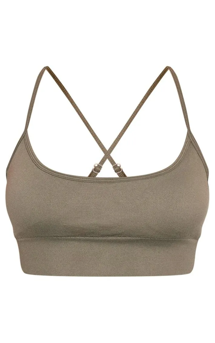 Give your workout wardrobe the update it deserves with this olive basic seamless padded sports bra. Brought to you in an olive hue seamless material with a padded design and adjustable straps, how can you say no? Pair this sports bra with the matching leggings, sneakers and your go-to accessories for a fierce gym-ready ‘fit like no other.