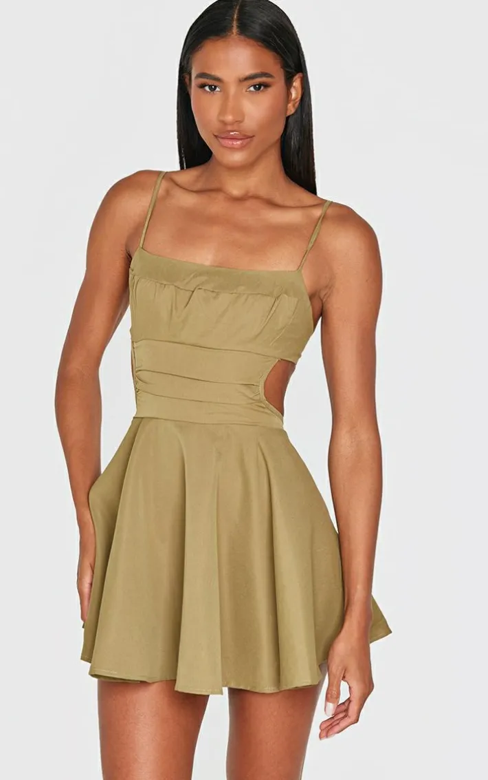 Enter the new season in style with this olive cut out tie back shift dress. Brought to you in an olive hue material with a cut out design, tie back detailing and a shift style, how can you say no? Style this shift dress with sandals and statement gold accessories for an effortlessly chic look that will steal all the stares.