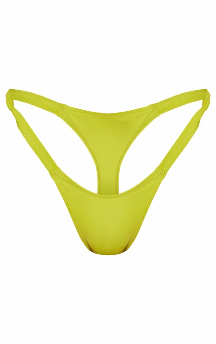 Soak up the sun in style with this olive micro tanga bikini bottoms. These bikini bottoms are brought to you in an olive material with a tanga design and a micro style, what’s not to love? Team these with the matching bikini top, sandals and your chunky gold accessories for a look like no other.