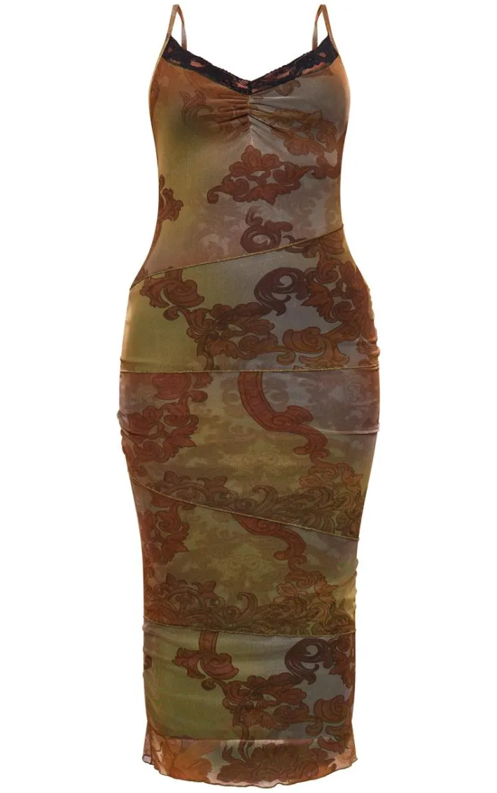 Amp up your style game with this olive ombre mesh lace trim ruched front midaxi dress. Brought to you in an olive ombre mesh material with a mesh lace trim and ruched front detailing, we’re obsessed. Style this midaxi dress with heels and gold accessories for a combo we’re crushing on.
