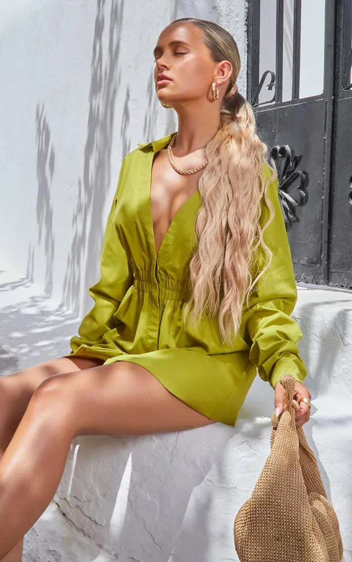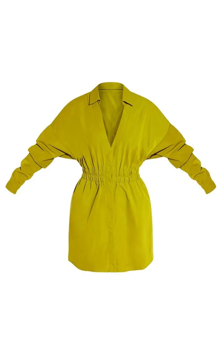 This shirt dress is perfect for any occasion. Featuring an olive green material with ruched waist detailing and long sleeves, we’re obsessed. Style this with sky-high heels for a look that will get you noticed.
