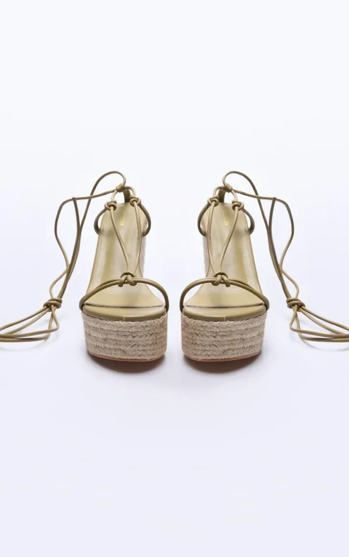 Instantly elevate your outfit with these olive twist strap lace up high heeled espadrille wedges. Brought to you in an olive hue material with a twist strap design, a lace up fastening and espadrille heeled wedges, we are obsessed. Style these olive wedges with your fave wardrobe pieces for a statement finishing touch to any look.